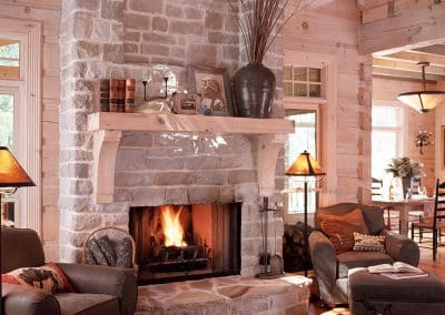 Log Rhythms has blended the best of highly textured natural materials with a high level of detail. The feel is both lodge like and cozy.