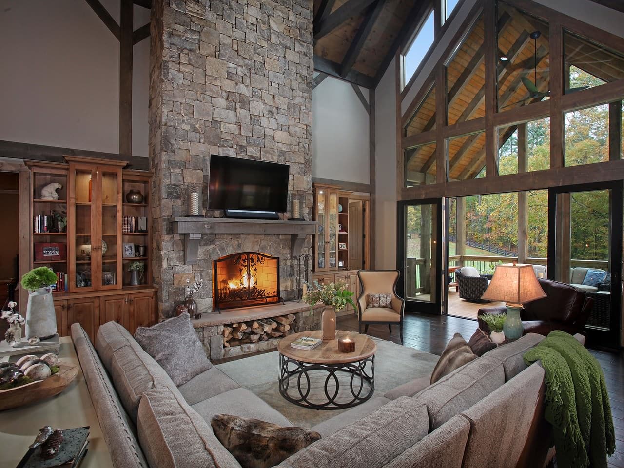 Timber frame details were carefully incorporated throughout the design, complementing the craftsman-inspired architecture of the remodeled exterior. A welcoming front porch greets visitors, while a large gabled porch attached to the great room expands entertaining areas and blurs the line between indoors and out. These spaces encourage gathering, relaxation, and appreciation of the property’s surroundings.